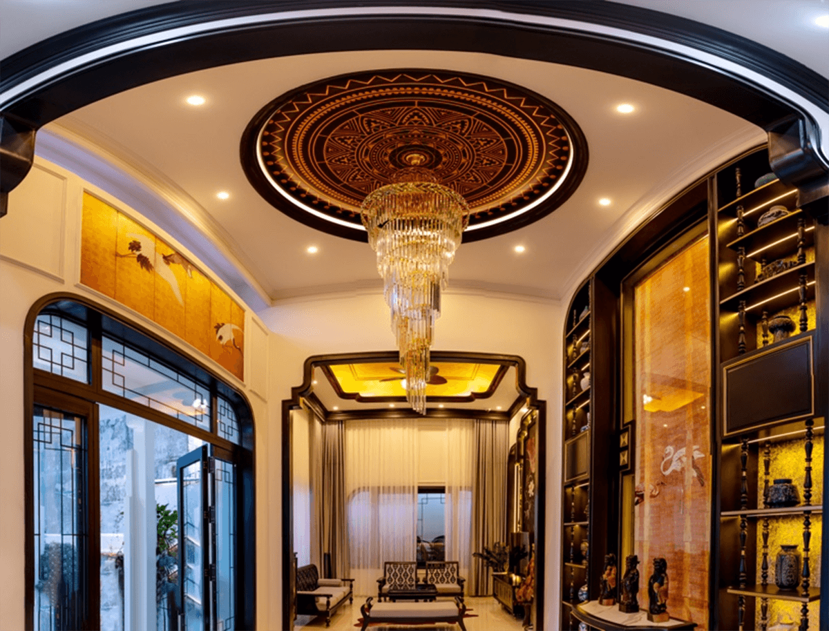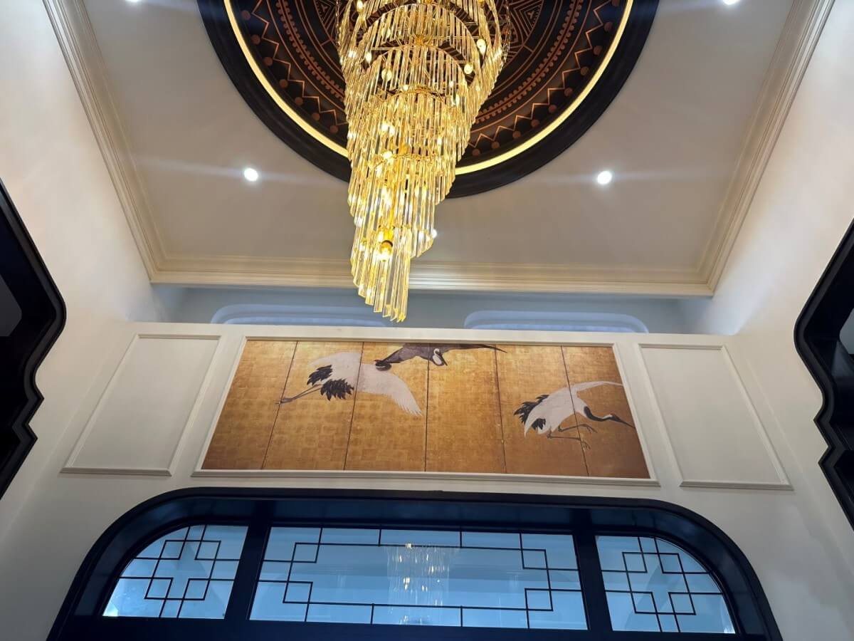 Loại chim hạc này thường thấy xuất hiện trên hoa văn trống đồng Đông Sơn, là một dấu ấn vô cùng quý báu của di sản văn hóa Việt Nam. Cánh chim hạc trắng, với sự linh hoạt và đẹp đẽ trong hình dáng, đã trở thành biểu tượng độc đáo trong thiết kế của ngôi nhà, mang trong mình ý nghĩa sâu sắc của trường thọ, sự thanh lịch và giá trị văn hóa của phương Đông.